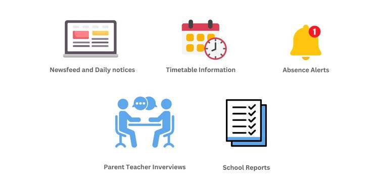 For daily notices, student absences, viewing timetable information and viewing school reports.
